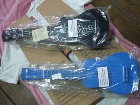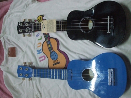 ขาย ukulele soprano สีฟ้าสายเดิม สีดำสาย Aquila ราคา 1290.- 1490.-