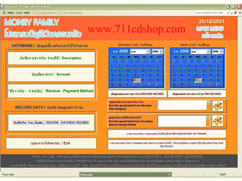 ================================================================== มีอีกหลายโปรแกรมให้เลือก เข้าไปชมได้เลยค่ะ http://www.711cdshop.com <---- คลิ๊กเข้าไปชมได้เลยค่ะ มีโปรแกรมให้เลือกอีกหลายโปรแกรม System Requirment : RAM 32 MB Window 95/ 98/ 2000/ ME/ XP / MS-ACCESS 97/2000 กระดาษที่ใช้พิมพ์ A4 หรือกระดาษคาร์บอนต่อเนื่องขนาด 9*11 หรือ 5.5*11 ไม่มีเส้น ฟรีค่าจัดส่ง ทั้งโปรแกรม และ สลิปเงินเดือน สั่งซื้อกรุณาโอนเงินผ่านธนาคารด้านล่าง ชื่อ บัญชี คุณศลิษา ธรรมจรัสวงศ์ ทุกบัญชี ธนาคารกรุงเทพ สาขาบิ๊กซี ลาดพร้าว ออมทรัพย์ เลขที่บัญชี 024-0-15796-6 ธนาคารกสิกรไทย สาขาบิ๊กซี ลาดพร้าว ออมทรัพย์ เลขที่บัญชี 968-2-02039-0 ธนาคารกรุงศรีอยุธยา สาขารัชดา-ห้วยขวาง ออมทรัพย์ เลขที่บัญชี 151-1-36364-9 ธนาคารกรุงไทย สาขาฟอร์จูนทาวน์ ออมทรัพย์ เลขที่บัญชี 799-0-06275-5 ธนาคารไทยพาณิชย์ สาขาถนนรัชดาภิเษก ออมทรัพย์ เลขที่บัญชี 060-2-85235-8 ธนาคารนครหลวงไทย สาขาห้วยขวาง ออมทรัพย์ เลขที่บัญชี 012-2-27442-7 และกรุณาส่งแฟกซ์ slip พร้อมที่อยู่ในการจัดส่ง และสินค้าที่สั่งซื้อมาที่ 0-2-691-6671 หากต้องการข้อมูลเพิ่มเติม กรุณาติดต่อ 089-486-6565 เวลา 10.30-20.00 น หรือ [email protected] เราจะจัดส่งสินค้าให้ท่านทางไปรษณีย์ลงทะเบียน หลังจากได้รับ fax 1 วัน