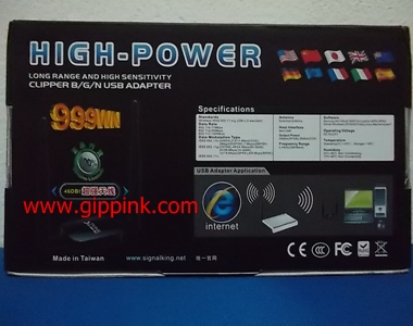 Signal King USB Wifi Adapter 999WN เป็นตัวแปลงรับสัญญาณwifi รุ่นใหม่ล่าสุดที่ทั้งเร็วและแรงขึ้นกว่ารุ่นก่อนใช้งานได้ไกลขึ้น New Chipset Ralink3037 เสาอากาศคู่ 20DPI 2000mW บู๊ทเตอร์เร่งสัญญาณ ซึ่งมีกำลังในการรับส่งสัญญาณสูงสุดถึง2000มิลลิวัตต์ เหมาะสำหรับผู้ใช้เครื่องคอมพิวเตอร์แบบตั้งโต๊ะ หรือคอมพิวเตอร์โน๊ตบุ๊คที่มีปัญหา เรื่องสัญญาน wireless ไม่ค่อยแรง เล่นแล้วช้า รับสัญญานได้ไม่ค่อยดี รับสัญญานได้ไม่ดีนัก