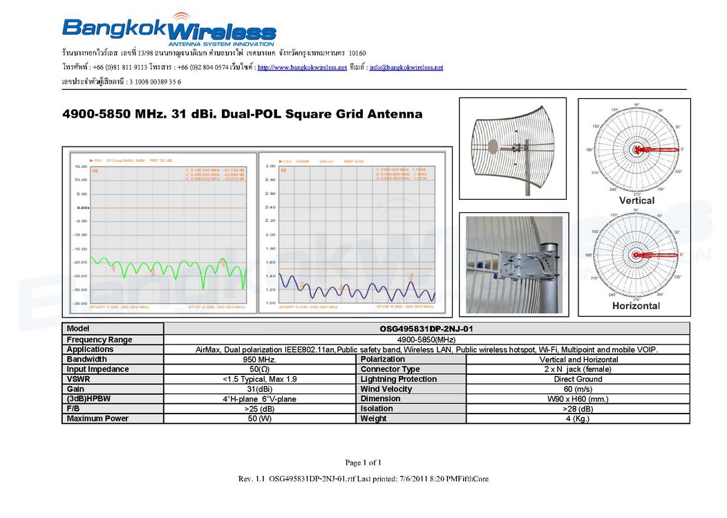 4.9 - 5.8 GHz ( 5 GHz ) เสาอากาศ Dual POL Grid Antenna 31 dBi. [BANGKOKWIRELESS]
