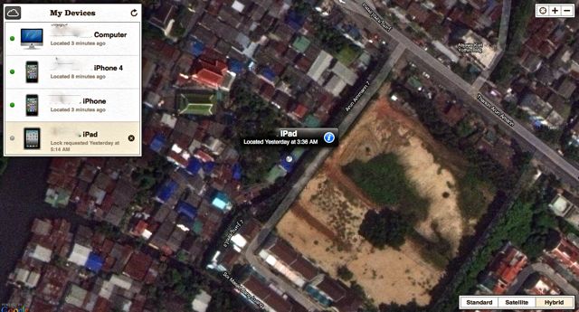 โชคเข้าข้างผมที่มีระบบ Find My iPhone เปิดใช้งานไว้ใน iPad 1 จึงได้เข้าระบบเพื่อติดตามคนร้ายในทันที เปิดครั้งแรก พบว่าคนร้ายไปอยู่บนสะพานพระปิ่นเกล้าแล้ว ค่อนข้างไวมาก จึงนำรถออกแล้วขับตามไปทันที โดยเปิดระบบนี้ติดตามไปเรื่อยๆ แล้วได้ประสานกับตำรวจ191กับธนาคารไปด้วย ผมพบว่าคนร้ายได้มีตำแหน่งหยุดที่กลางซอย อรุณอัมรินทร์7 จึงแจ้งตำรวจ191ให้นำกำลังไปยังจุดสัญญาณและประสานกับสน.บุปฝารามด้วย ถึงที่เกิดเหตุไปเดินตามหาสัญญาณในซอย ได้พบชายพร้อมมอเตอร์ไซด์ทำตัวมีพิรุธ จึงจับกุมและได้พบของกลางเป็น กล่องส่องทางไกลขนาดเล็กของผมในกระเป๋ากางเกง แต่ไม่พบสิ่งของอื่น ตำรวจจึงได้ยึดรถและกล้องส่องทางไกลไว้เป็นของกลาง และดำเนินการเรียกเจ้าของบ้านให้ขอความยินยอมตรวจค้นบ้านที่มีสัญญาณอยู่ แต่แล้วก็ไม่พบเพราะเครื่องได้ถูกปิดไปแล้ว สน.บุปผารามจึงควบคุมตัวผู้ตองหานำส่งสน.บางรักที่เป็นสถานที่เกิดเหตุ ผู้ต้องหายังปากแข็งไม่ยอมให้การอะไร พูดจาวกไปวนมา ส่งฟ้องศาลในมาตรา336 ลักทรัพย์โดยฉกฉวยเอาซึ่งหน้า ผู้ต้องหาเป็นชาวมุสลิมใกล้มัสยิดบางหลวง เคยต้องคดีค้ายาบ้า60เม็ด จำคุกเกือบ5ปี เพิ่งออกมาได้ไม่ถึงสองเดือน ก่อเหตุอีกแล้ว ผู้ต้องหาก่อเหตุในเขตที่ไกลมาก ไม่ทันรู้ว่าจะโดนติดตามด้วยระบบไฮเทคนี้ และยังออกหมายจับผู้กระทำความผิดร่วมอีกคนด้วย