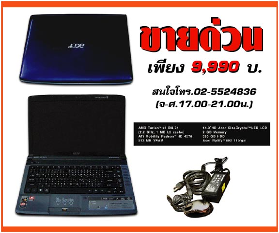 ขายด่วน โน็ตบุก 9,990 แค่นั้น สนใจสอบถามเพิ่มเติมหรือติดต่อขอดูเครื่องได้ที่ เบอร์โทร 02-5524836 จ-ศ 17.00-21.00 น.หรือ
