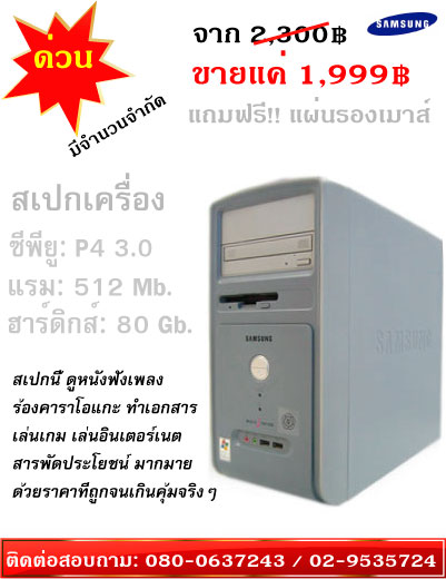ด่วน โปรโมชั่นคอมตั้งโต๊ะ P4 3.0 /Ram 512/HDD 80/ ขายแค่ 1,999 บาท จำนวนจำกัดครับ