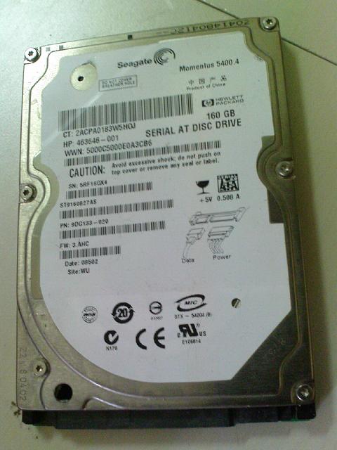 ขายถูก HDD Notebook SATA 160G ยี่ห้อ SEGATE NOBAD ขายเพียง 850 บาท มีรูปสแกนแบด