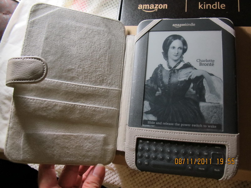 kindle3wifi + เคสหนังสีครีม + ไฟ(ซื้อจากamazonโดยตรงค่ะ)