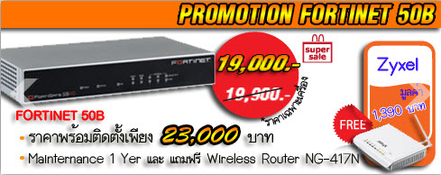 โปรโมชั่นfortinet 50B เพียง 23,000 บาท พร้อมติดตั้ง และ ฟรี ดูแล 1ปีเต็ม ฟรี Wireless Router NG-417N