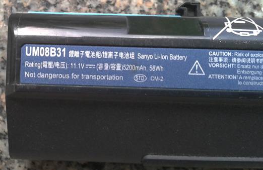 ขายแบตเตอรี่ NetBook Acer Aspire One D250 สภาพ 85% Battery 6 cell 5200 mAh 3-4 ชั่วโมงสบายๆ สนใจ ติดต่อ พิชัย 086-5566150