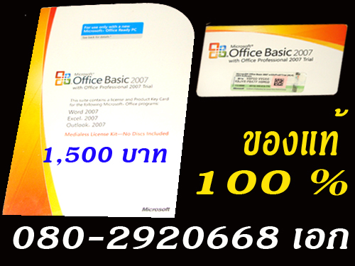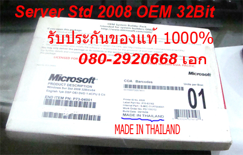 1.ขาย Windows XP Professional SP2c English 1pk DSP OEI CD w/Thai LIP ยังไม่ได้แกะกล่อง 3,000 บาทภายในกล่องสีน้ำตาล จะมีแผ่น CD 2 แผ่น ไม่สามารถมองเห็น CD-KEY จากข้างนอกได้ครับ (ปลอดภัยแน่นอน) ซื้อมาไม่ได้ใช้ครับ สภาพ 100% มีใบเสร็จยืนยันครับ มีอยู่ 35 ชุด 2.OFFICE 2007 BASIC 1,500 บาท 2. Windows Server Standard 2008 w/SP2 32bit ราคาถูก ซื้อมา 24,000 บาท ต้องการขาย 15,000 บาท (ขาดทุนครับ) สินค้าทุกตัวตรวจสอบผ่านMicroSoft ได้เลยครับ รัปประกันยังผ่านการลงทะเบียน ของแท้ 100% สนใจติดต่อได้เลยครับ 089-0002087 /085-6751333เอก (สินค้าเหมื่อนกับรูปที่ลงไว้เลย)