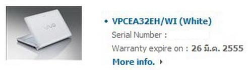 วันนี้มากันอีกแล้วครับพี่น้อง สำหรับ Notebook ดี ๆ สวย ๆ งาม ๆ แถมราคาถูก ๆ สภาพกิ๊บ ๆ เนียนกันสุด ๆ ไปเลยครับ ประกันยาวปี๊ดเกือบ 1 ปีเต็ม มาให้พี่น้องได้เลือกซื้อกันอีกแล้วครับ การออกแบบดูดี มีสไตล์ บอดี้สวยงามกลมกลืนอย่างลงตัว พี่น้องท่านใดกำลังมองหา Sony Vaio สวย ๆ แรง ๆ เข้ามาดูกันเลยครับ เป็น Sony Vaio EA32EH/WI สีขาว สวยงามสะอาดตา มาพร้อมกับ CPU Core I3-370 Processor 2.4GHz RAM DDR3 พร้อมด้วย Windows 7 License แท้ สภาพกิ๊บ ๆ เนียนสุด ๆ ประกันอีกยาวปี๊ด ประกันศูนย์ถึง 03/2012