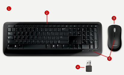 ตัวเมาส์ขนาดเหมาะมือ น้ำหนักกำลังพอดี ใช้ถ่าน 1 ก้อน ความละเอียดของ dpi อยู่ที่ 1000 แบตเตอรี่อยู่ได้นานถึง 8 เดือน มีปุ่ม Power Switch สำหรับปิดเมื่อไม่ได้ใช้งาน ตัวคีย์บอร์ด มีลักษณะมันเงา สวยงาม ใช้ถ่าน 2 ก้อน มีปุ่ม Hot Keys ช่วยอำนวยความสะดวกในการใช้งาน ดังนี้ Quickly Access Calculator, Volume Control, Mute, and Play/Pause อายุการใช้งานของแบตเตอรี่ นาน 15 เดือนเลยทีเดียว ใช้งานได้ไกลถึง 10 เมตร เม้าส์ และคีย์บอร์ดชุดนี้ใช้สัญญาณความถี่ 2.4 GHz Microsoft Wireless Desktop 800 1. Secured Wireless Connection 2. Easy-Access Hot Keys 3. Microsoft® Optical Technology 4. Snap-in Transceiver 5. Battery Status Indicators