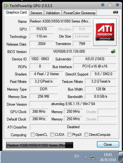 EAX550HM512/TD/256M DDR 128Bit PCI-Ex ค่าย ATi ประกันใจ 7วัน มีตัวการ์ดจอและกล่อง เสปคและดาวน์โหลดไดร์เวอร์ http://www.asus.co.th/Graphics_Cards...specifications การ์ดรุ่นเล็กๆไว้เล่นเกมส์ออนไลด์ เล่นเน็ต ดูหนัง