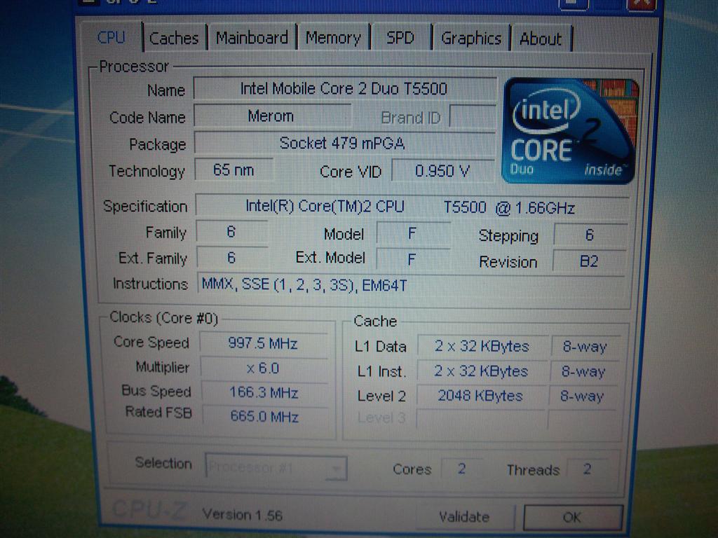 Intel Core 2 Duo processor T5500 (1.66GHz, 2MB L2, FSB 667GHz)