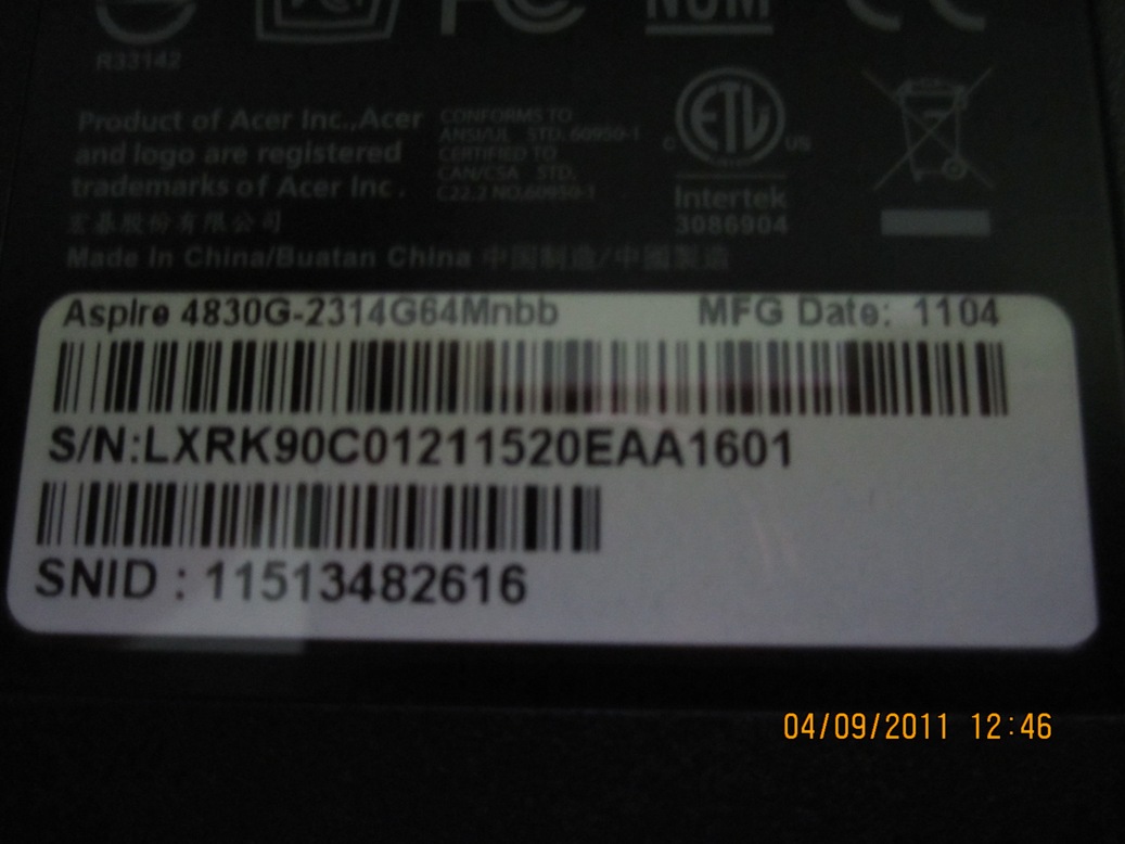 ต้องการขาย Laptop "ACER" Aspire # 4830G ของหม่ราคาพิเศษ จำนวนเพียง 1 เครื่องเท่านั้น
