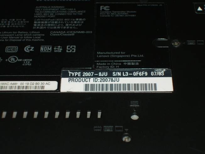 Thinkpad T60p 2007-8ju - CPU Intel Core 2 duo T7600 2.33 MHz - RAM DDR2 2 GB, Hard disk 320GB - Graphic card ATI Mobility FireGL 5250 512MB - DVD CD-RW UJ-842 - LCD Display Max. 1400 x 1050 - Battery around 3 hours.