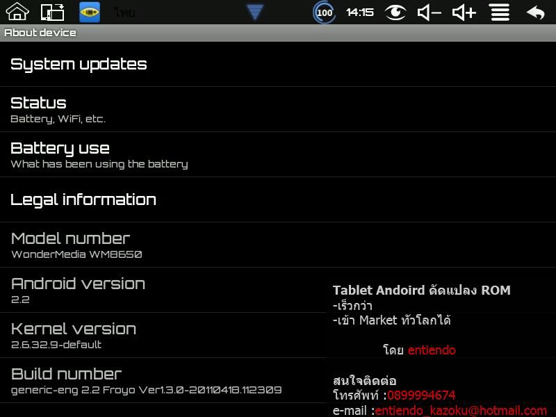 (ขาย)Tablet 8 นิ้ว ANDROID 2.2 แปลง ROM ให้ลงโปรแกรมที่ต้อง root และเข้า Market ทั่วโลกได้ในราคา 3300 บาทนะขอร้าบ!