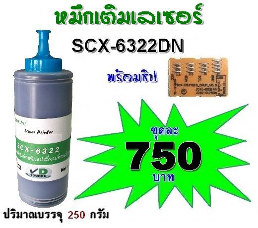 หมึกเติมเลเซอร์สำหรับ "ซัมซุง" SCX-6322dn ตบับหมึกนัมเบอร์ SCX-6320D8 (พร้อม" ชิพ " ปริมาณการพิมพ์ 8,000แผ่น) ***สั่งซื้อ 10 ชุดขึ้นไป ราคาชุดละ 650 บาท ***ส่งชิพเ่ก่ามาแรกซื้อ ลด 100บาท/ตัว/ชุด บริการส่งทั่วราช อาณาจักร - ฟรีค่า ส่ง... กรณีโอนเงินค่าสินค้า - ส่งพัสดุเก็บเงินปลายทาง(คิดค่าส่งตามจริง) สั่งซื้อสินค้าโทร : 089 712 6747 สอบถามเพิ่มเติมโทร : 086 643 5248