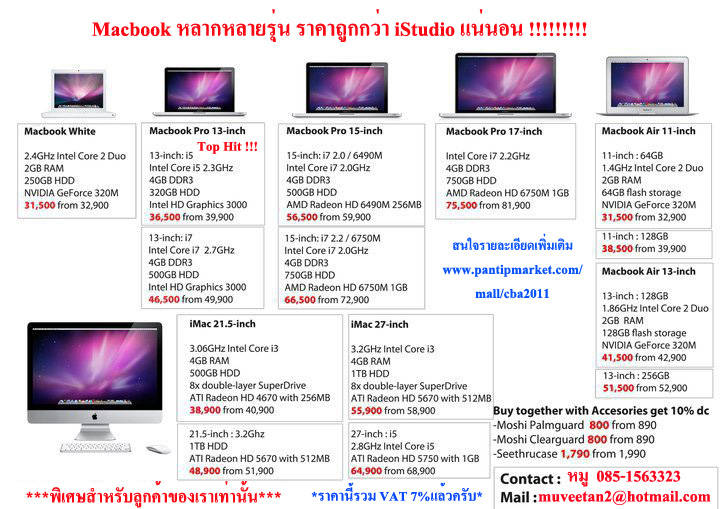 ขาย Macbook Pro 13-15-17 inch , Mackbook Air ราคาถูกกว่า iStudio แน่นอน!!!!! ราคาแบบนี้ หนึ่งปีมีหนเดียว