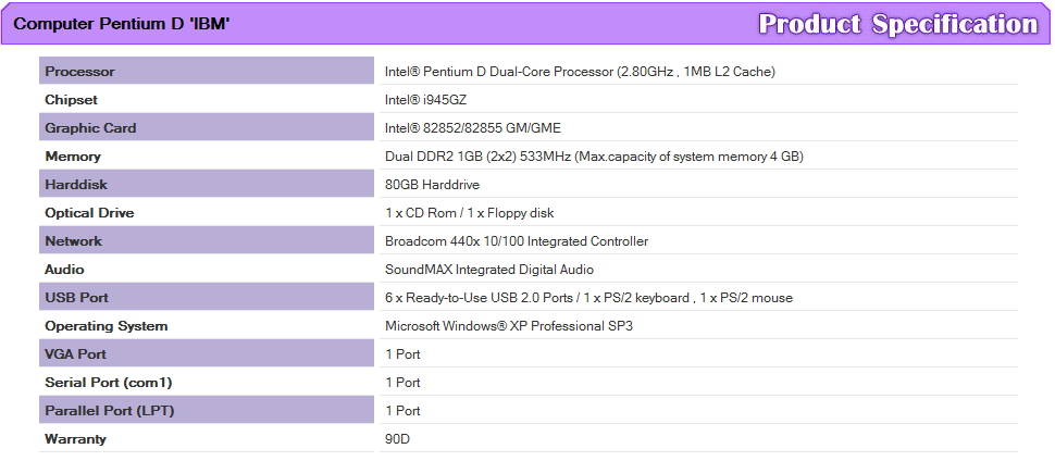 คอมฯIBM Intel® Dual-Core Processor (2.80GHz ,ram1G ,hdd80) ทั้งชุด 5500