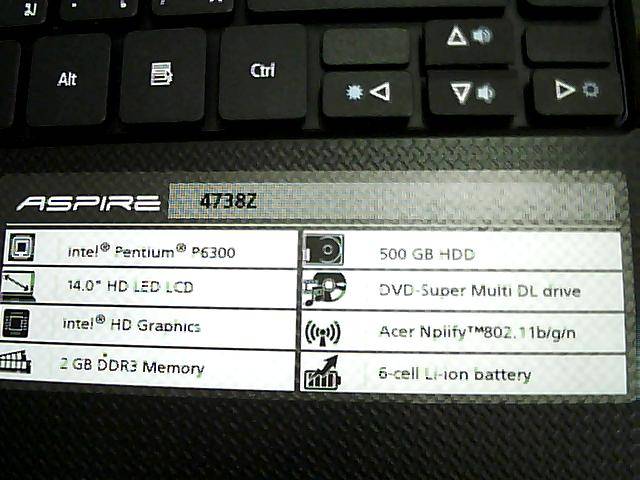 ขายโน๊ตบุ๊ค Acer Aspire 4738z สภาพดี มีประกัน เครื่องสวยตำหนิไม่มี เครื่องซื้อมาวันที่ 1/04/54 ประกันอีกนาน อุปกรณ์มี ตัวเครื่อง ที่ชารจ์ กระเป๋า เมาส์ คู่มือและแผ่นไดร์เวอร์ ขาย 12900 บาท สนใจติดต่อ 081-5825117 ครับ