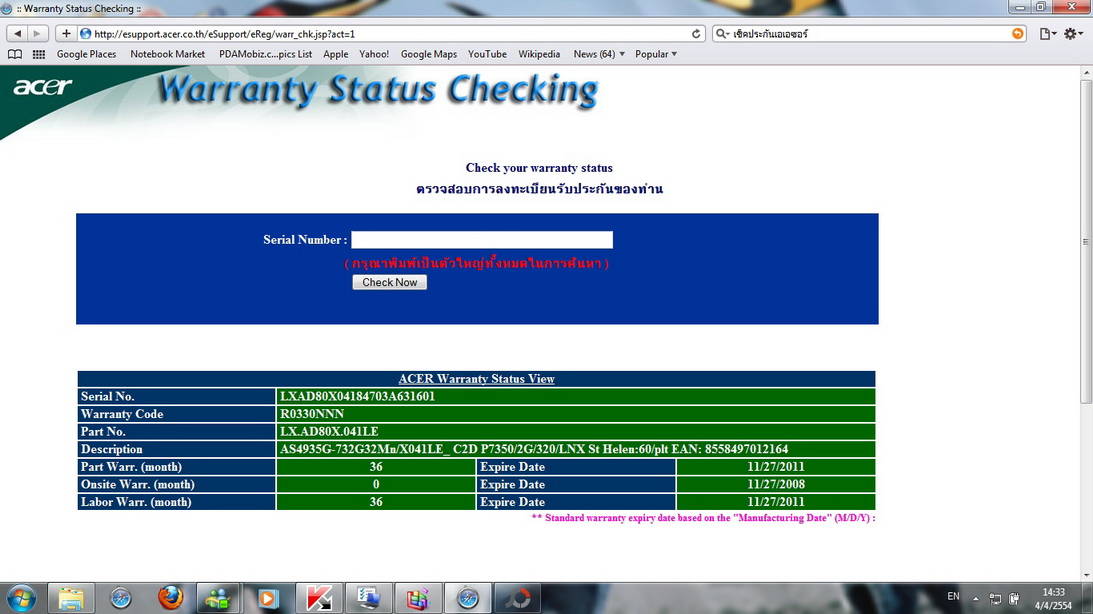 ประกัน : ถึง 27/11/2011 ครับ