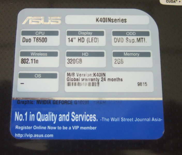 รายละเอียด: Type : NoteBook ASUS K40IN-VX034