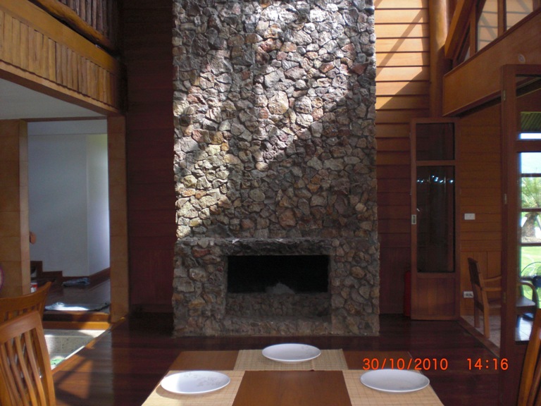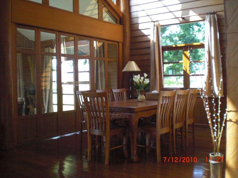-มีเตาผิงไฟภายในบ้าน,ตกแต่งภายในด้วยไม้สักทั้งหลัง,พร้อมเฟอร์นิเจอร์ไม้สัก