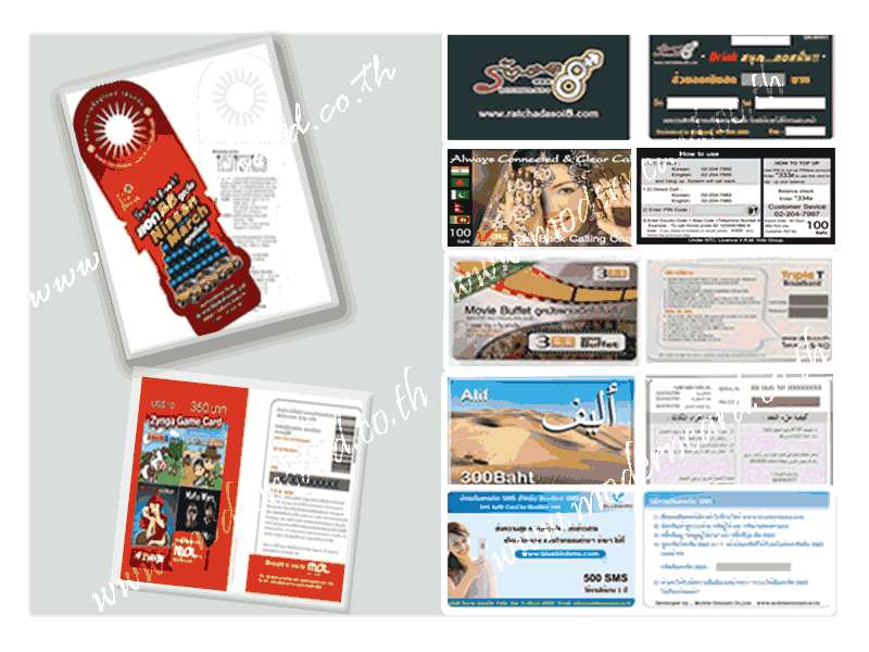 - บัตรเติมเงิน, บัตรขูดรหัส, บัตรการ์ดเชิญ,บัตร อินเตอร์เน็ท, บัตรขูดรหัส , บัตรเข้าออกอาคาร,บัตรสมาชิกคลับ สปา