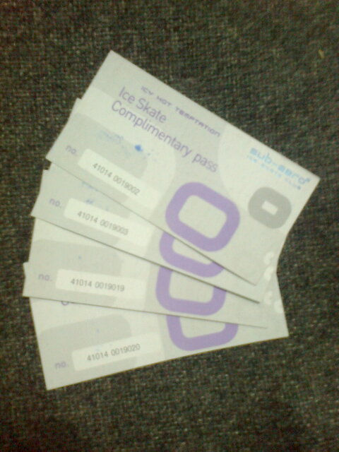 ** บัตรsub-zero ICE SKATE CLUB 4ใบ **