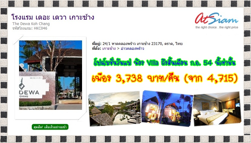 | คำค้น: | โปรโมชั่น | atsiam | trat | โรงแรม | cheap | promotion | ที่พัก | ตราด | kohchang | เกาะช้าง | | ||||