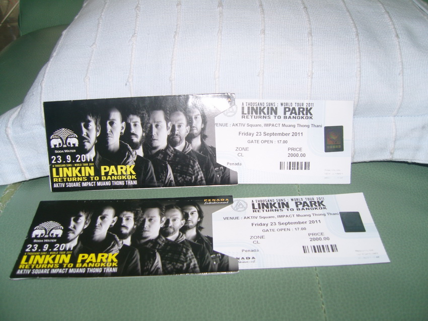 บัตรคอนเสิร์ต LINKIN PARK RETURNS TO BANGKOK 2011 ZONE CL 23 กันยายน 2011 ครับ ผมไปไม่ได้ครับติดธุระด่วน เลยต้องการขายครับ ด่วน...ปกติใบละ 2,000 บาท (มี 2 ใบ) ขายเพียงใบละ1,600 บาท (2 ใบ ราคา 3,000 บาท) ด่วน...