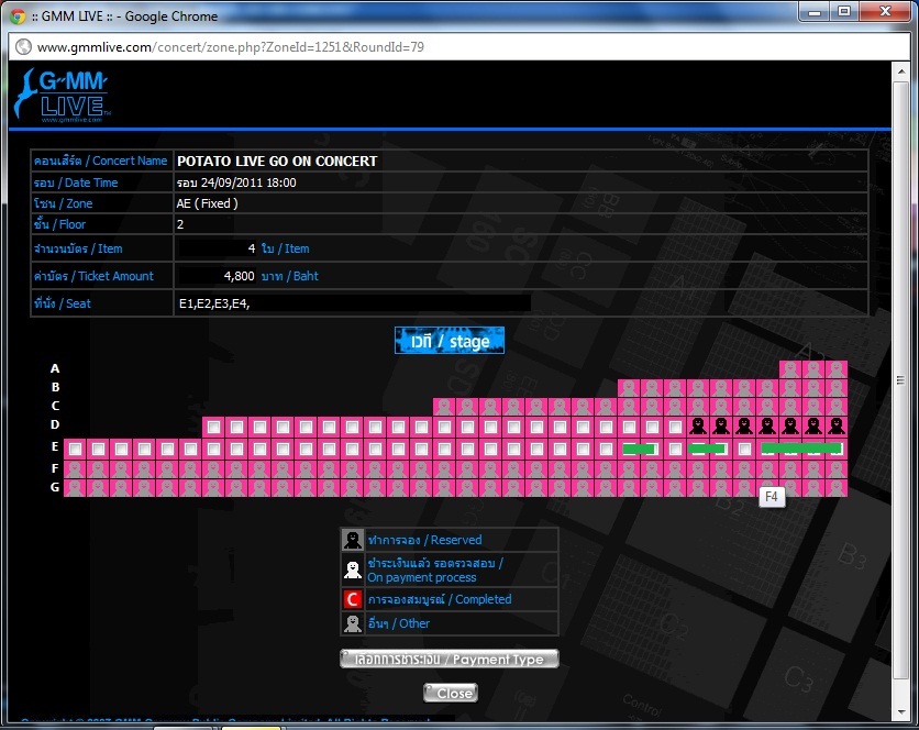 บัตรนั่ง Zone AE แถว E(แถวที่5)