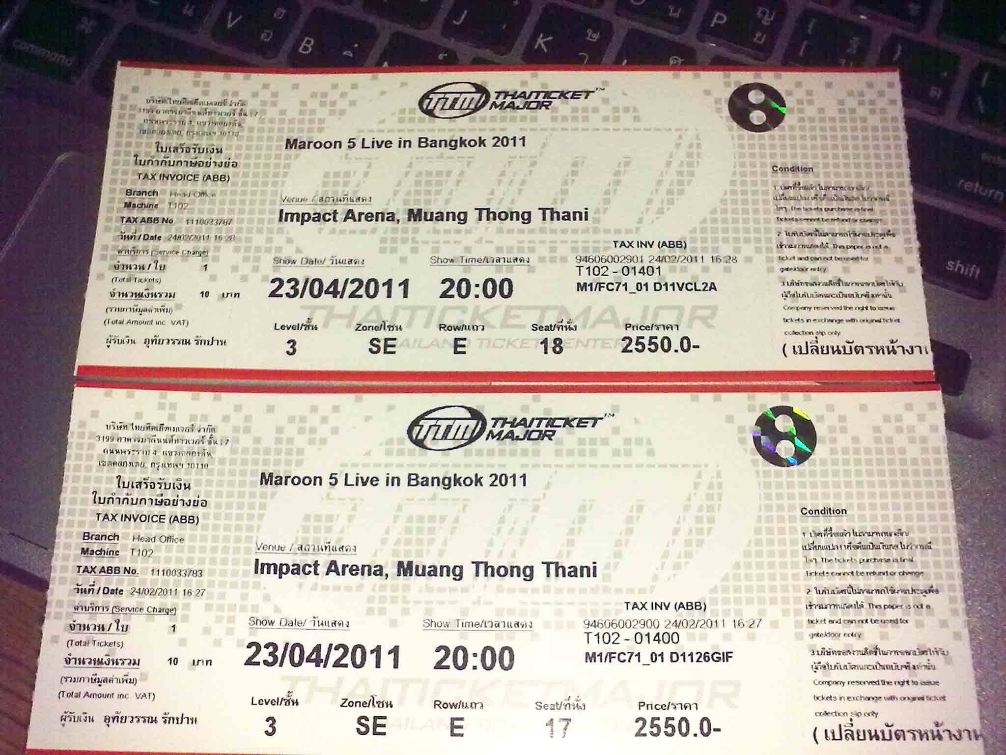 ขออนุญาติขายบัตร Maroon 5 Live in Bangkok 2011 2ใบด่วนๆ ราคาพิเศษ