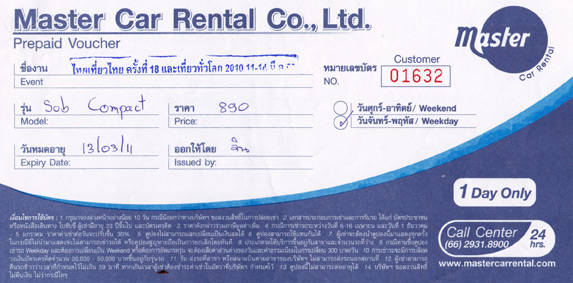 ขายคูปองเช่ารถ Master Car รถเก๋งเล็ก (Vios, Jazz) ราคา 890.- บาท ต่อใบ ใช้วันจันทร์ - พฤหัส ซื้อ 2 แถม 1 ติดต่อ เคท 081-8357124