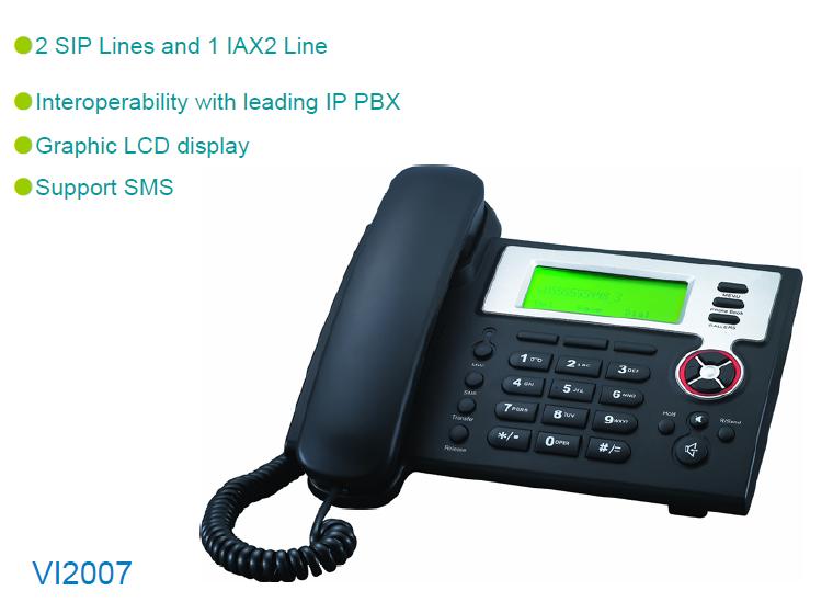VI2006 IP PHONE รหัสสินค้า: 000609 ราคา 2,400.00 บาท รายละเอียด: VI2006 A Middle level IP phone designed for SMB and HOME users 2 SIP Lines Support VLAN Transfer/forward LCD Display Features and Benefits VI2006 is ideal for both the small office and general enterprise users.Enterprise SIP phone's new design and enhanced features address the need for an elegant IP handset solution for the executive office at a highly competitive price. VI2006 is an Internet based voice network phone terminal, which adopts multiple voice control protocols and voice compression coding methods to directly convert analog voice into IP packet for internet transport, thus effectively using the existing bandwidth to provide PSTN quality voice service. VI2006 supports IAX2&SIP protocols,support Bridge and Router model.Support IAX2 and dual public server, offers Two Ethernet interfaces and is compatible with various softswitch systems and VoIP voice gateways to provide broadband IP voice service. VI2006 supports traditional telephony features such as Flexible dial map, Hotline, Empty calling reject, Black list for reject authenticated call, limit call, No disturb, Caller ID as well as advanced enterprise features such as 2 independent SIP accounts, 3-way and conferencing.