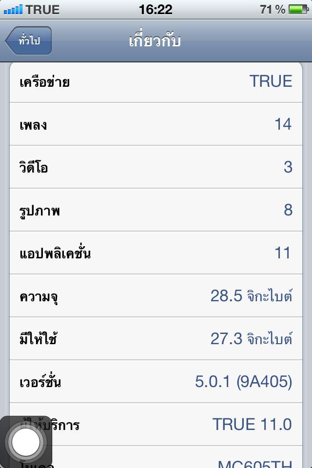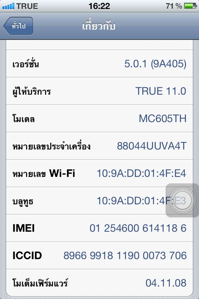 สีดำ ซื้อจากศูนย์ AIS เจลเบลกแล้ว ก่อนขาย restore กลับคืนให้แล้ว ios 5.0.1 ตามภาพ