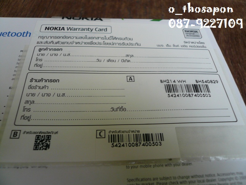 ขาย หูฟัง Nokia Bluetooth Stereo Headset BH-214 ของใหม่ยังไม่แกะกล่อง ราคา 850 บาท