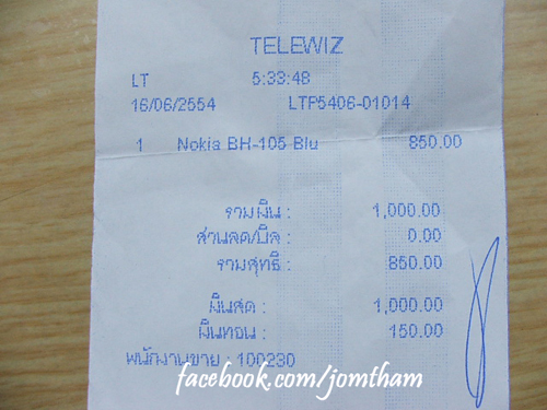 คำบรรยายตามภาพประกอบ 1.สภาพจากภายนอกกล่อง 2.อุปกรณ์ทั้งหมด 3.ตัวบลูทูธจากด้านหน้า สังเกตดีๆ ผมยังไม่ได้ถอดพลาสติกออกเลย ใหม่มว๊ากกกก 4.ตัวบลูทูกจากด้านหลัง ขาเกี่ยวสามารถดึงออกเพื่อสลับ และหมุนแกนสำหรับคนถนัดซ้ายหรือขวาครับ 5.ใบเสร็จจากร้าน TELEWIZ จะสังเกตได้ว่า ผมเพิ่งจะซื้อมาเมื่อวันที่ 16 ที่ผ่านมานี่เอง แต่กว่าจะได้ขายก็ล่วงมา 2 อาทิตย์ ตั้งไว้เกือบลืมซะแร่ว ^^" หมายเหตุ : ขอย้ำน่ะครับว่าไม่เหมาะกับการใช้เดินทางด้วยเท้า/รถเมล์อย่างยิ่ง (เพราะไม่มีระบบตัดเสียงรอบข้าง มีก็แต่รุ่นแพงๆอ่าเน๊อ) แต่ถ้าใช้ ในห้องทำงาน หรือ ขับรถ หรือ นอนคุยกับแฟนกุ๊กกิ๊กๆบนเตียงล่ะ หะแหล่มเลย ปล.หากสนใจติดต่อได้ตามนี้น่ะครับ ผม "จอม" ครับ หมายเลขโทรศัพท์ติดต่อ : 084-434-4686 หรือทาง E-mail : [email protected]