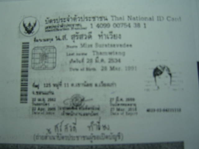 นางสาวสุรัสวดี ทำเวียง เลขบัตรประชาชน 1-4099-00754-38-1 เกิด28/03/2534 เป็นคนขอนแก่น
