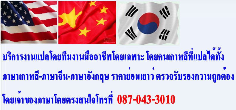 ^^บริการรับแปลภาษา เกาหลี จีน อังกฤษ โดยเจ้าของภาษาโดยตรง รับรองความถูกต้อง ราคาไม่แพงโทรมาได้เลย^