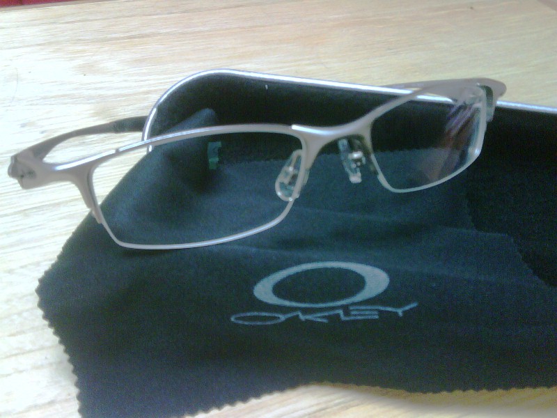 แว่นสายตา Oakley Wire Tap สี Titanium (Fake Grade A) ครึ่งกรอบ ตัวแว่นโลหะผสม สี Titanium ขาหลังยาง ตรง สัดส่วนแว่น 50-18-132 มม. (Eye-Bridge-Temple) กล่องอลูมิเนียม ผ้าเช็ด เป็นของซื้อมายังไม่ได้ใช้ครับ ผมเอาไปตัดใส่เลนส์สายตาแต่ใส่แล้วไม่สบายตา แว่นเล็กกว่าใบหน้า.. เสียดายของ ขอเอามาขายต่อกับผู้ที่ชอบ Oakley คับ
