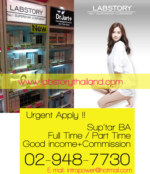 รับสมัคร Sup'tar BA (ผู้แนะนำผลิตภัณฑ์และขาย) LABSTORY ประจำห้างวัตสัน นอกเวลา/งานประจำ พื้นที่เขต ก.ท.ม ด่วน