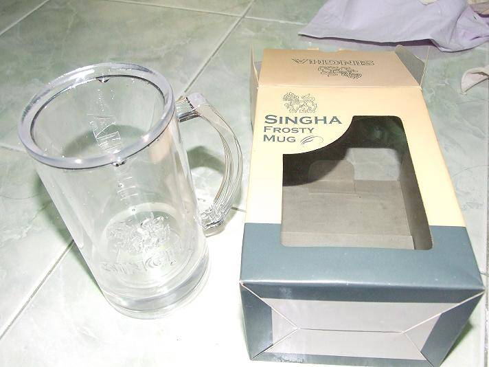 2. แก้วน้ำพลาสติก แบบมีน้ำหล่อ สำหรับใส่ในช่องฟิต ก่อนที่จะนำมาใส่น้ำหรือเบียร์อีกที เป็นลายสิงห์ครับ น่ารัก ๆ น่าสะสมครับ ขอขายที่ 80+ ems 50 บาท