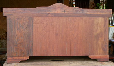 ทำจากไม้สักทองทั้งหลัง ออกแบบให้สามารถนั่งใส่รองเท้าบนตู้ได้ สวยงามทนทาน