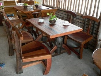 ชุดโต๊ะ สนาม เก้าอี้สามขาไม้เกวียน(ทำจากไม้จากเกวียน)