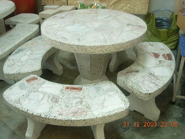 - โต๊ะหินขัดทรงสี่เหลี่ยมมีพนักพิง 74 x 74 ราคาชุดละ 3,300 บ.