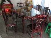ขายชุดโต๊ะมุกพร้อมเก้าอี้6ตัว ขาสิงห์ ลายแปดเซียน + เก้าอี้โยก สภาพดีมาก อายุ10ปี