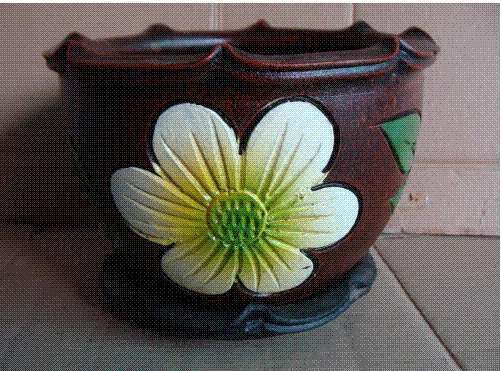 กระถางดินเผาด่านเกวียน ลายดอกไม้