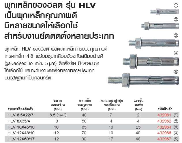 ขายพุกเหล็ก Hilti รุ่น HLV ราคาถูก