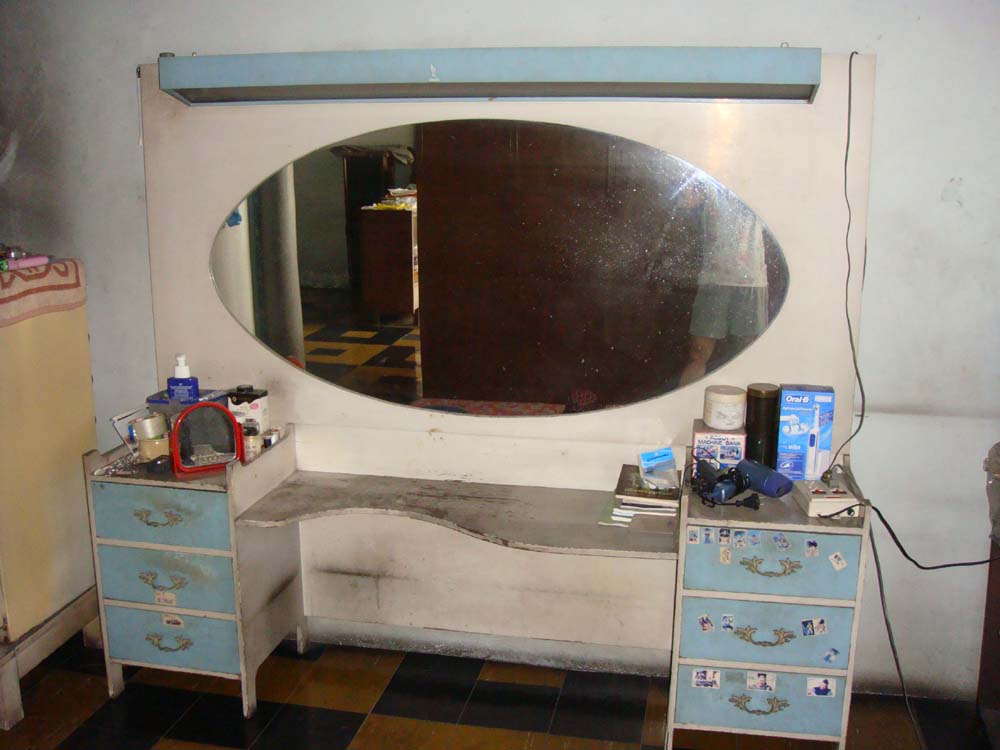 โต๊ะเครื่องแป้งใหญ่ ไม้แท้ สูง 63 1 /2 นิ้ว ยาว 72 นิ้ว มีลิ้นชักข้างละ 3 ชั้น กระจกเงาบานใหญ่ มีไฟในตัว