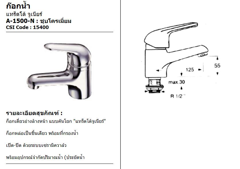 ก๊อกอ่างล้างหน้าเดื่ยวยี่ห้อAMERICAN STANDARD รุ่น A-1500-N